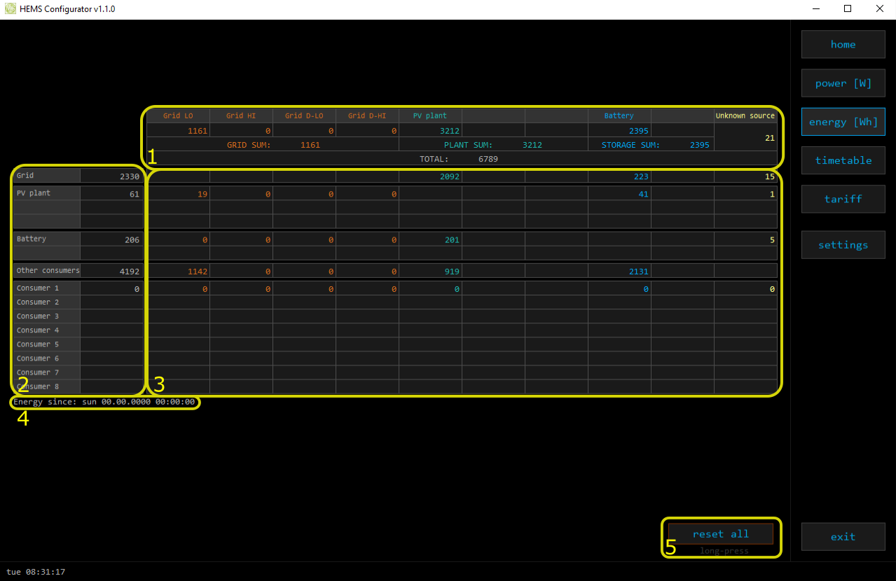 | Long-press to reset all energy counters |