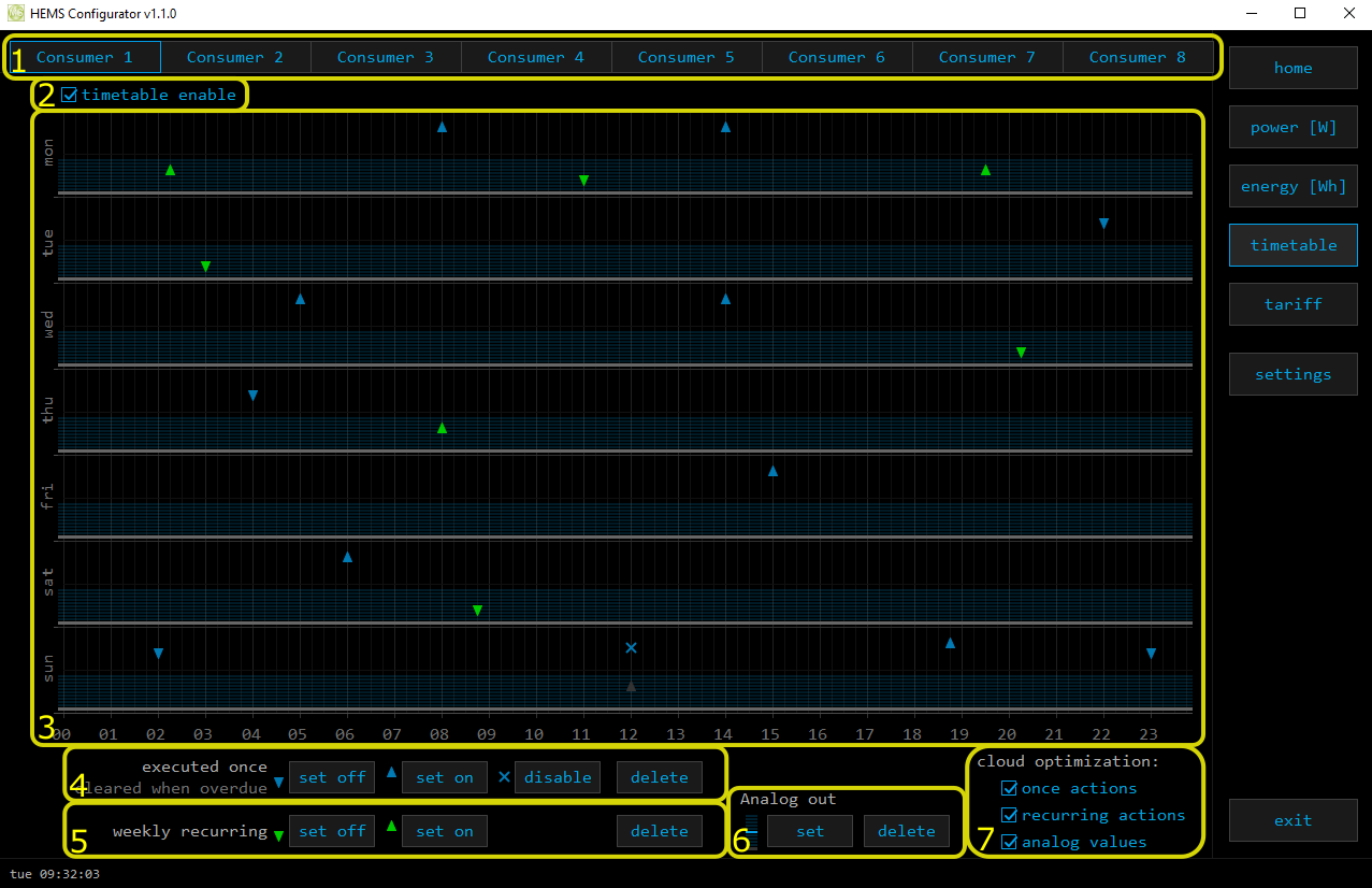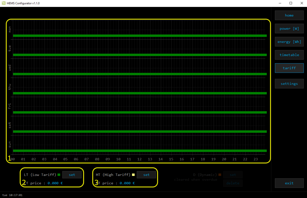 Weekly tariff timetable for grid energy per tariff distribution.