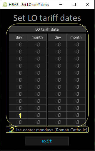 2. Low tariff dates