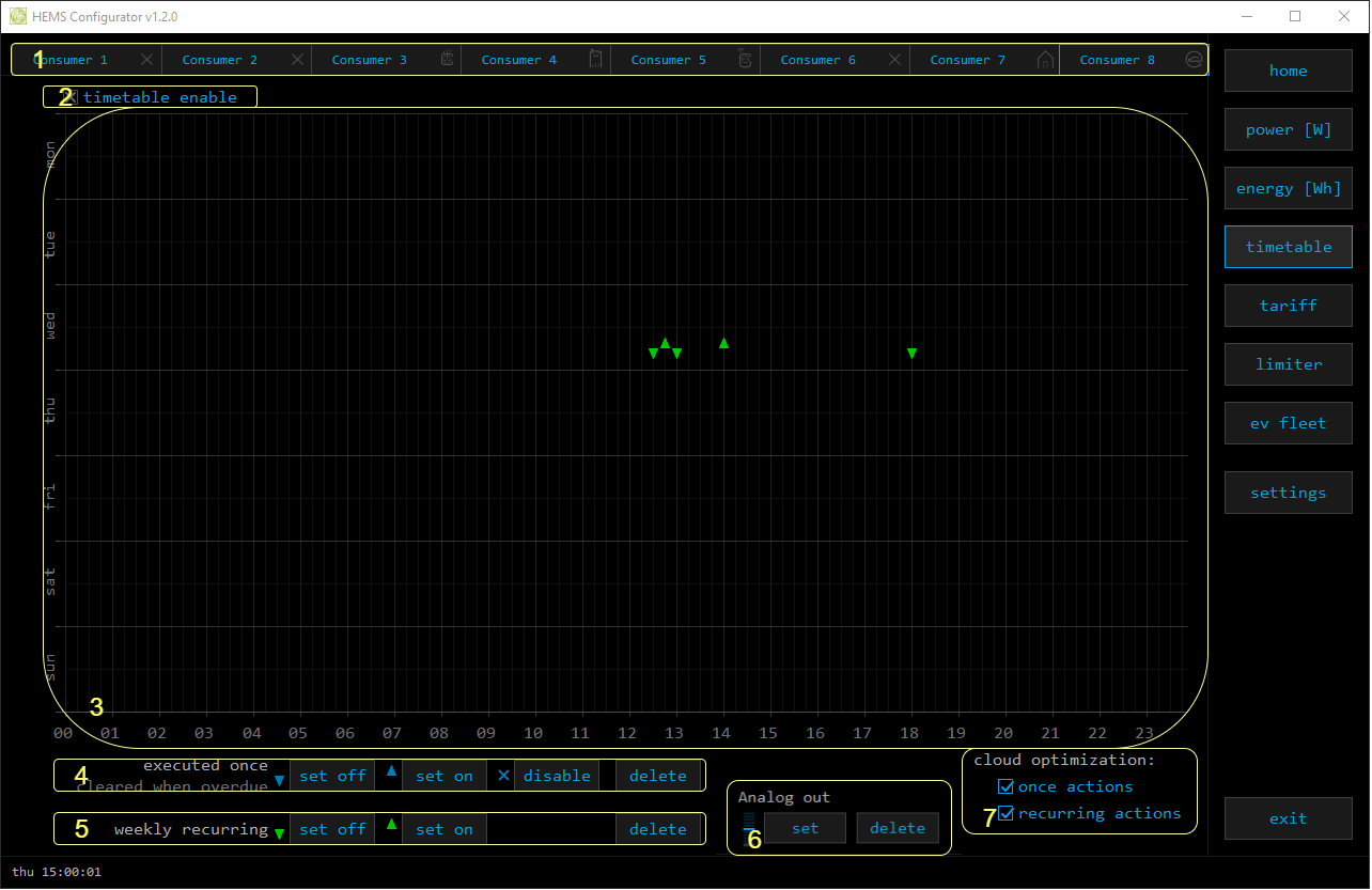 Weekly timetable for managed consumers.