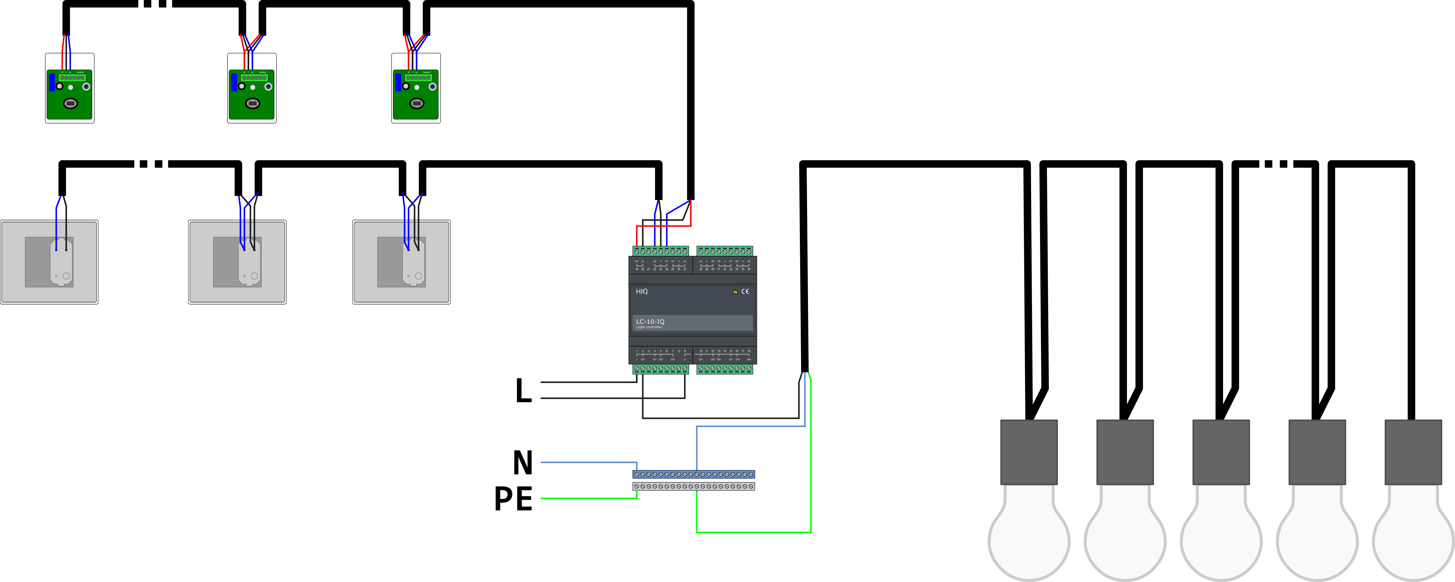 - Lots of lights, push-buttons and motion sensors in parallel